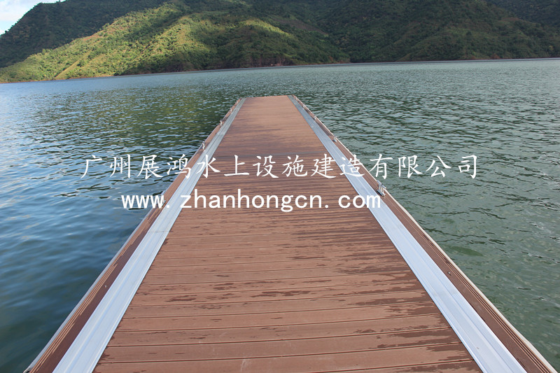 3、在支浮橋的端部熱鍍鋅鋼結(jié)構(gòu)里面設(shè)一個樁導(dǎo)( 樁導(dǎo)直徑. 400-500mm),根據(jù)規(guī)定,每個模塊都包含有: 塑木防撞條,硬木地板,聚氨酯膠輪 。