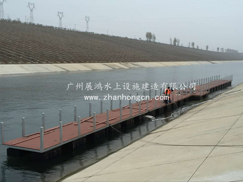 南水北調(diào)中線干線取水浮橋工程由廣州展鴻設(shè)計、生產(chǎn)、施工歷時一個月完成,此浮橋的作用在于取水跟供行人用,中間有一個空洞設(shè)計專用于放置6臺水泵。此工程現(xiàn)已交付給甲方使用,并得到甲方的贊賞!