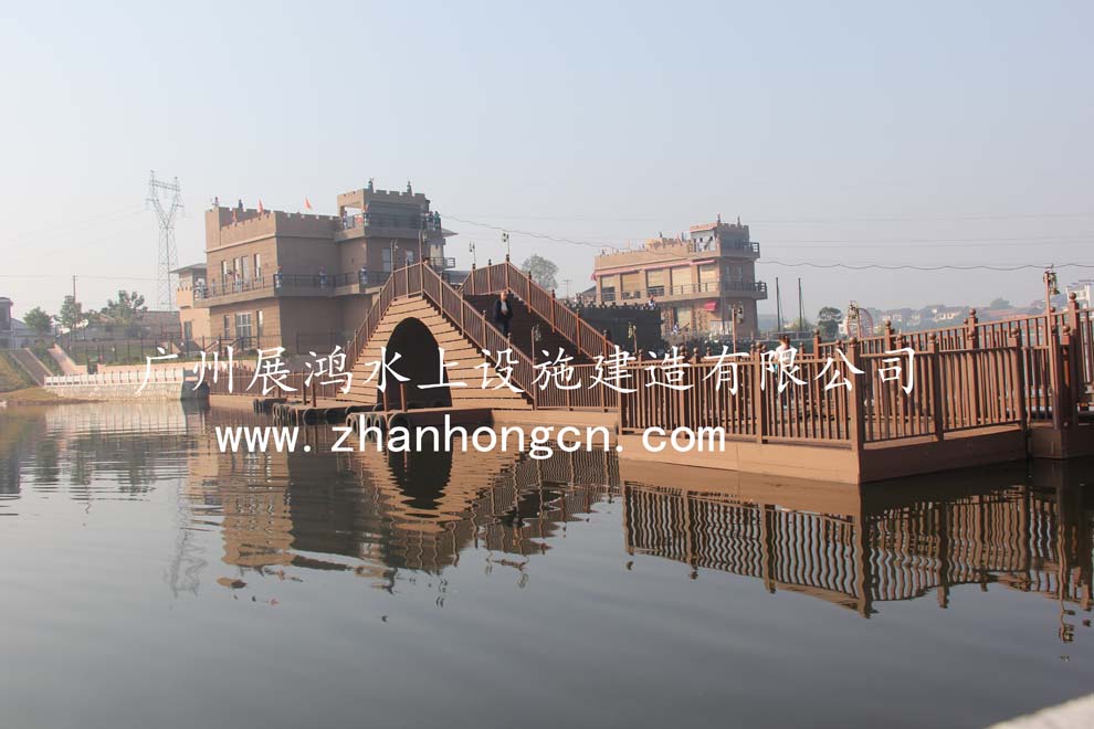 This floating bridge across the Lujiang river in Ancient Town, there is a big film base, the bridge can provide a big scene for the film.