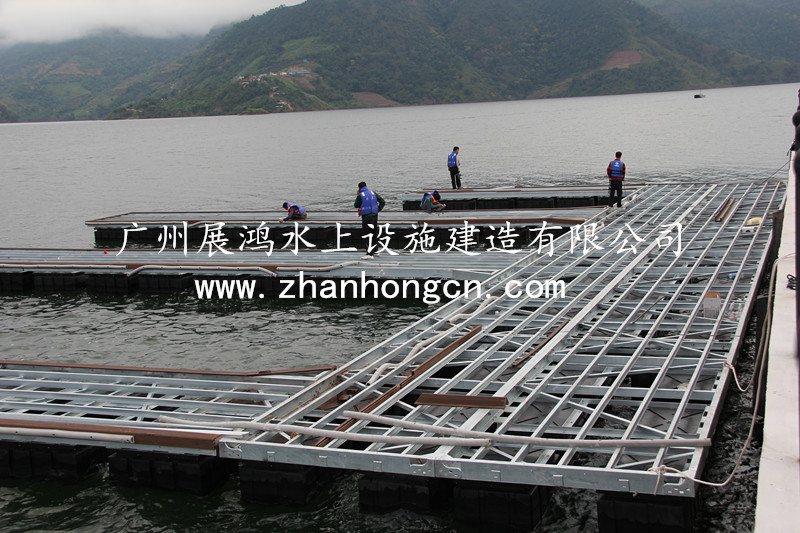 展鴻鋼結(jié)構(gòu)游艇碼頭采用符合航海標(biāo)準(zhǔn)的Q235國家標(biāo)準(zhǔn)鋼材作為主浮橋的基本框架,表面經(jīng)過科學(xué)的熱鍍鋅處理,增強了框架的抗氧化能力和抗腐蝕能力;不同結(jié)構(gòu)分段之間通過不銹鋼連接件和特制橡膠塊連接,使浮碼頭達到最佳效果。此外,浮橋有兩條側(cè)管道,供管線及電纜鋪設(shè)之用管道由鋁合金蓋板覆蓋,可輕易打開,便于維修保養(yǎng)或安裝新設(shè)備。浮橋桁架上的小孔成規(guī)則性分布,每兩個小孔間距離一致,這樣,就可以在任意位置連接系船設(shè)備(如系纜樁纜柱子、支橋等),位于連接區(qū)的蓋板特別為此種型號的浮橋設(shè)計、甚為穩(wěn)固,可抗高于標(biāo)準(zhǔn)產(chǎn)品的耐疲勞性。可選用塑木板作為鋪板;浮箱可選用高密度PE浮箱,里面填充15KGS/M3的高密度泡沫;配備有橡膠護舷或WPC碰墊來保護船體;所有配件用Aisi316不銹鋼螺母和螺栓連接框架,固定方式可以是打樁,也可采用水底拉簧固定。